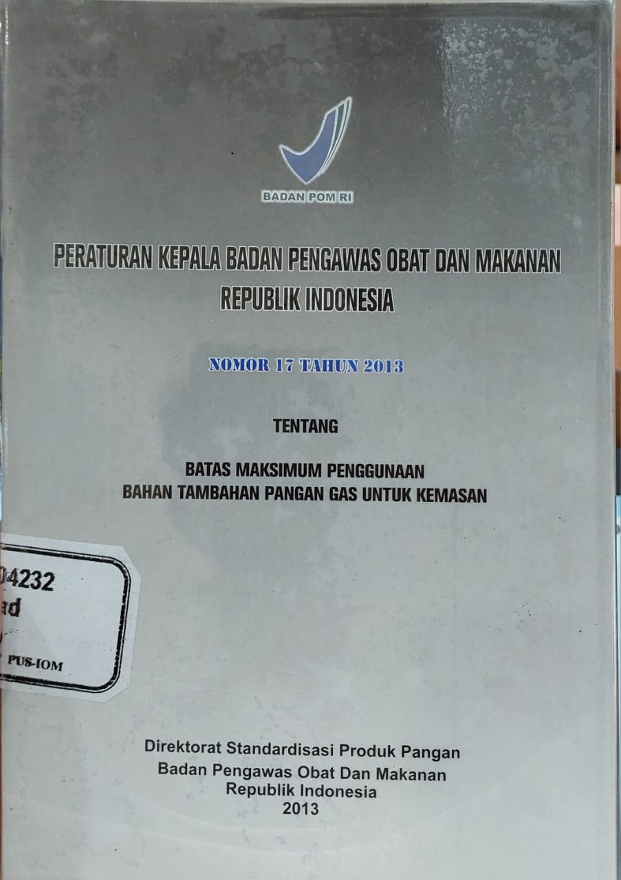 Peraturan Kepala Badan Pengawas Obat dan Makanan Republik Indonesia Nomor 17 Tahun 2013 Tentang: Batas Maksimum Penggunaan Bahan Tambahan Pangan Gas Untuk Kemasan