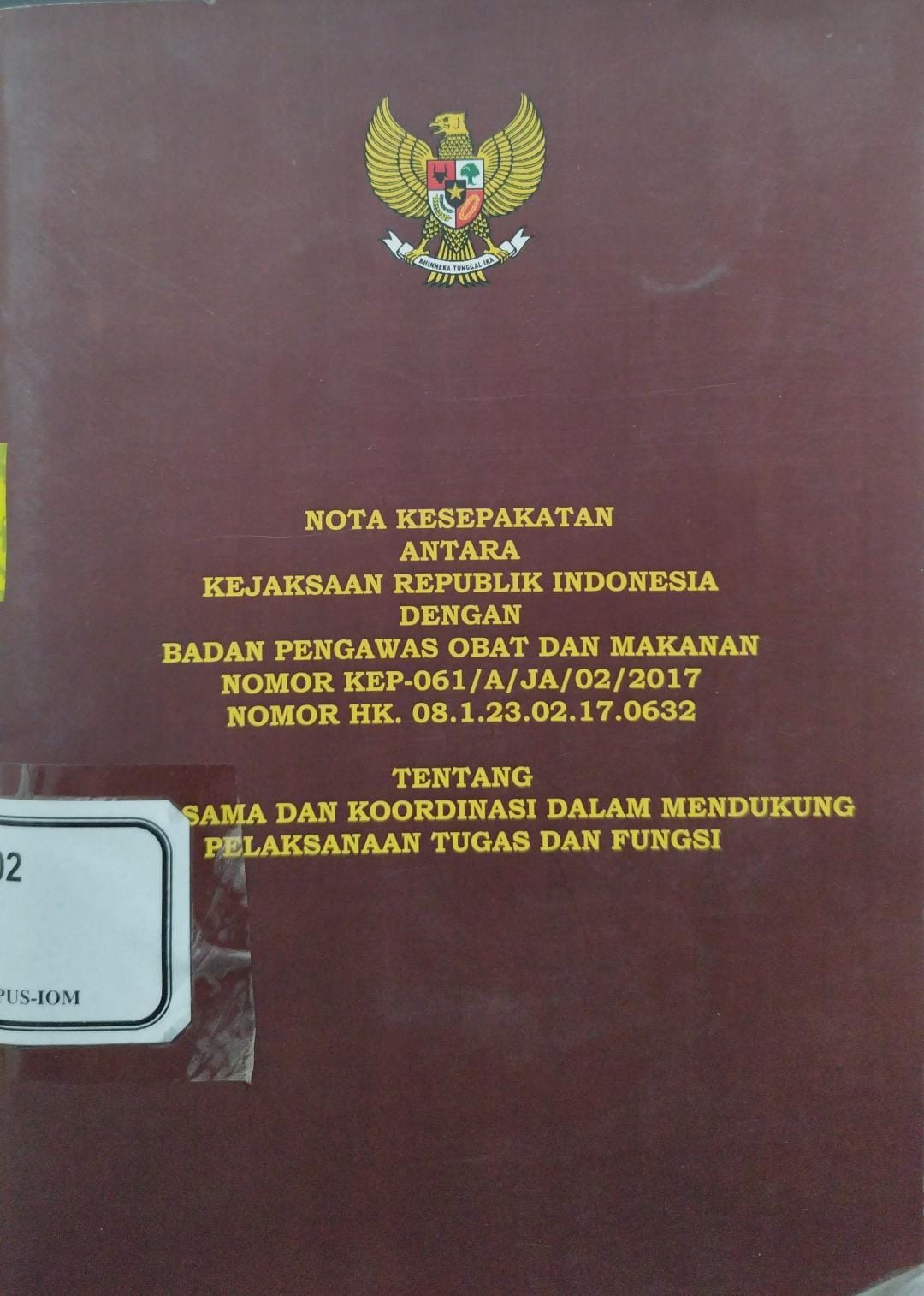 Nota Kesepakatan Antara Kejaksaan Republik Indonesia Dengan Badan Pengawas Obat dan Makanan Nomor KEP-061/A/JA/02/2017, Nomor HK. 08.1.23.02.17.0632 Tentang Kerjasama dan Koordinasi Dalam Mendukung Pelaksanaan Tugas dan Fungsi