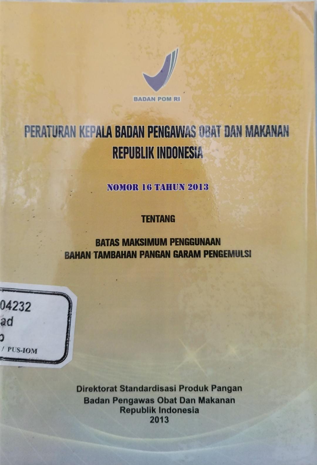 Peraturan Kepala Badan Pengawas Obat dan Makanan Republik Indonesia Nomor 16 Tahun 2013 Tentang Batas Maksimum Penggunaan Bahan Tambahan Pangan Garam Pengemulsi