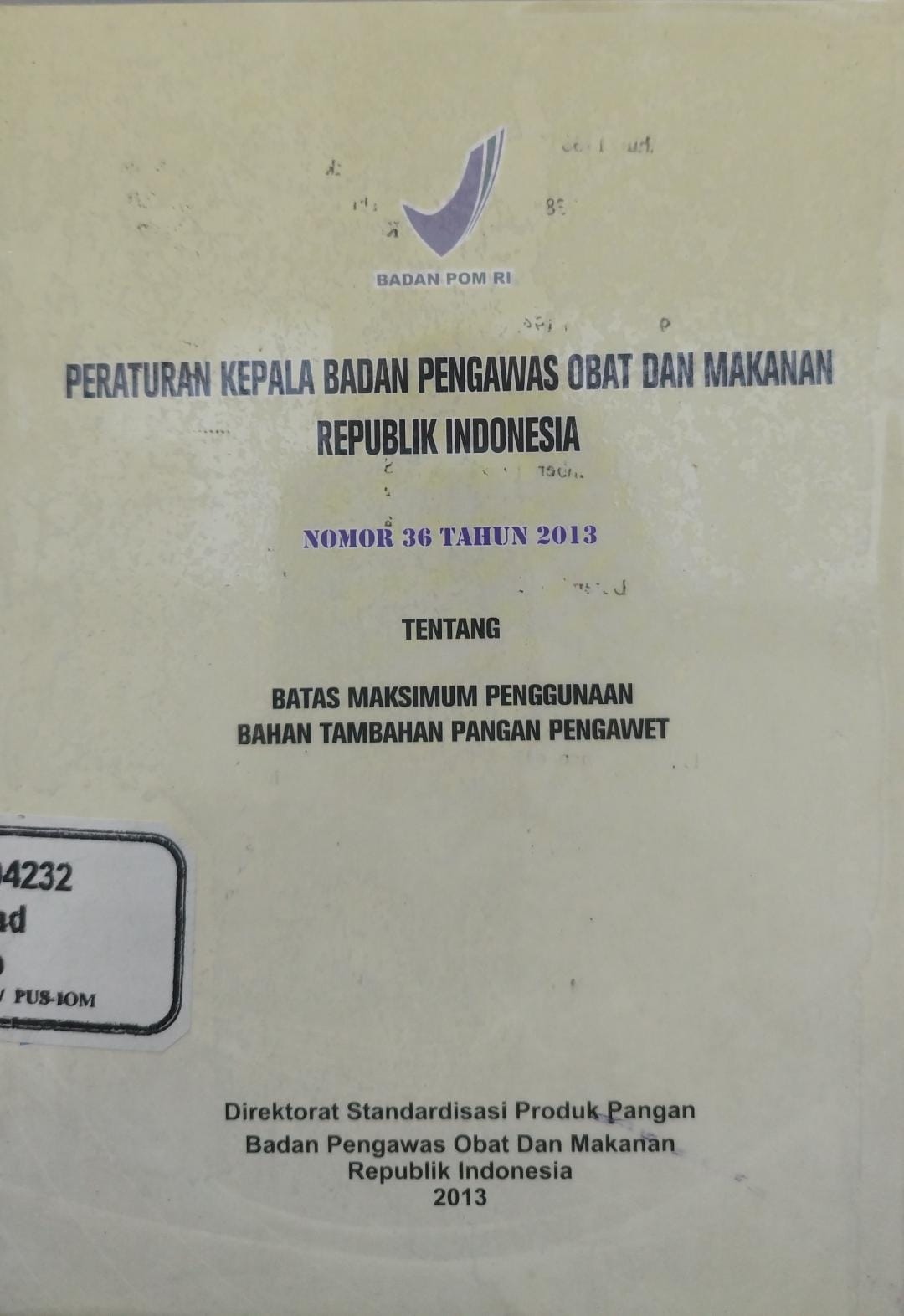 Peraturan Kepala Badan Pengawasan Obat dan Makanan Republik Indonesia Nomor 36 Tahun 2013 Tentang Batas Maksimum Penggunaan Bahan Tambahan Pangan Pengawet