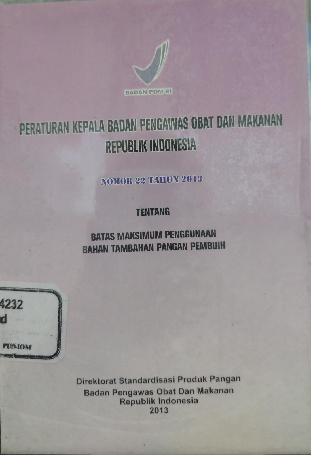 Peraturan Kepala Badan Pengawas Obat dan Makanan Republik Indonesia Nomor 22 Tahun 2013 Tentang Batas Maksimum Penggunaan Bahan Tambahan Pangan Pembuih