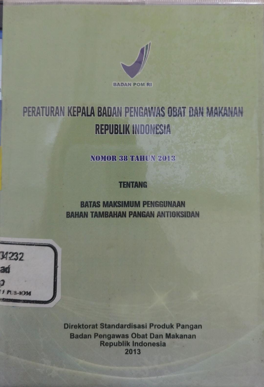Peraturan Kepala Badan Pengawas Obat dan Makanan Republik Indonesia Nomor 38 Tahun 2013 Tentang Batas Maksimum Penggunaan Bahan Tambahan Pangan Antioksidan