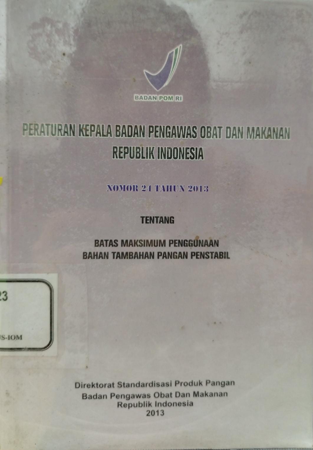 Peraturan Kepala Badan Pengawas Obat Dan Makanan Republik Indonesia Nomor 24 Tahun 2013 Tentang Batas Maksimum Penggunaan Bahan Tambahan Pangan Penstabil